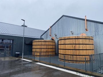 Čas letěl rychle a my jsme zjistili, že musíme hned jet, abychom stihli alespoň nakouknout do nejmladší palírny na Islay – palírny Ardnahoe. Ano, říkal jsem, že Bunna byla poslední, ale já to tak trochu beru. Hlavně proto, že do Ardnahoe jsme jeli jen rychle nahlídnout a nemají ještě svou whisky. Přesto jsme si říkali, jestli nebudou mít na baru aspoň newmake nebo nějakou tříletou whisky k ochutnání. Bohužel jsme se tam dostali asi 10 minut před zavíračkou, a tak bar už byl komplet zavřený (asi by stejně nic neměli) a prohlídli jsme si alespoň místní obchůdek. Ten je opravdu hodně prostorný, to je snad největší distillery shop na Islay. V nabídce samozřejmě mají mnoho whisky různých palíren a bottlerů, nějaký svůj merch… Ale kup si tričko Ardnahoe, když jsi to ani nepil!? To je jako když lidi nosí tričko Guns and Roses, ale neví, kdo je Axl Rose. Takže jsem si v palírně Ardnahoe koupil akorát kafe v automatu u dveří a šel ven na obhlídku. Dvě velké dřevěné kádě s červama vypadají moc pěkně, jinak palírna jako taková působí dost moderně a osobně se mi líbí. Ale je jediná, která není natřená na bílo… Tsss.