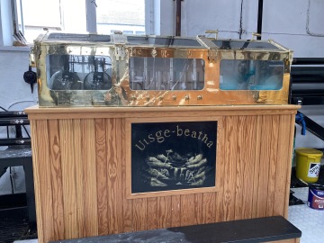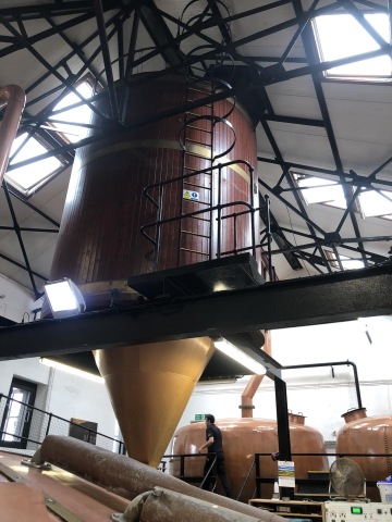 Zajímavostí byly dva kopačáky v kýblích v rohu místnosti. Margaret nám vysvětlila, že si s tím kluci vážně nekopou, ale míče se používají při čištění potrubí. Pobavení jsme prošli až ke krásným dřevěným kvasným kádím. Ty jsou pojmenované podle majitelů palírny v průběhu její existence a my jsme tak slyšeli hned několik příběhů o jejich životech. Destilační kotle v Bowmoru jsou krásné a ne zrovna malinké. Dva třicetitisícové washstilly a dva zhruba patnáctitisícové spirit stilly seřazené v řadě před spirit safem měly napilno. A tak jsme je po krátkém pozdravení a pohlazení opustily a se slinama v ústech zamířili k východu ze stillhousu.