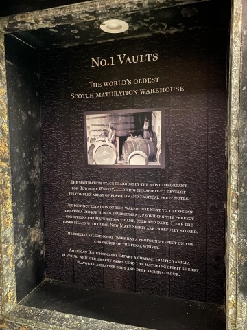 Kolem nově dovezených barelů po bourbonu (můžete si tipnout, z jaké americké palírny asi pochází, když víte, že vlastníkem palírny Bowmore je Beam Suntory) jsme došli až k místní svatyni. Legendární Vaults No.1! „ Joo! Vážně tam půjdeme“, zaradoval jsem se. Tenhle starý dunage warehouse je nejstarším skladem whisky v celém Skotsku a zajímavostí je rovněž to, že v době přílivu je podlaha skladu de facto metr pod hladinou moře. Obrázek černých dveří s bílým nápisem No. 1 Vaults, které jsou uzamčené masivním starým rezavým zámkem známe snad všichni. Je to prostě krása. A samozřejmě, ve skladu leží ty největší poklady, tak je potřeba je náležitě chránit. Proto bylo trochu překvapením, když jsme tam přišli a dveře nezamčené a dokořán. A víte co, ani jsem se nedivil. Oni prostě v těch skotských palírnách jsou takoví. Moc to nikde nezamykají, nehlídají. Až jsem si vzpomněl, jak jsme si jednou udělali sami prohlídku v palírně Balvenie, kde rovněž bylo vše otevřeno dokořán, nikde nikdo, a tak se mírně zawhiskovaný Vašek Rout neohroženě jal nám udělat VIP prohlídku. Ale to už je jiný příběh.