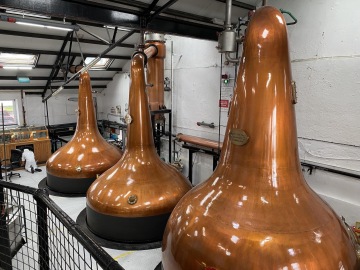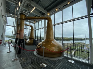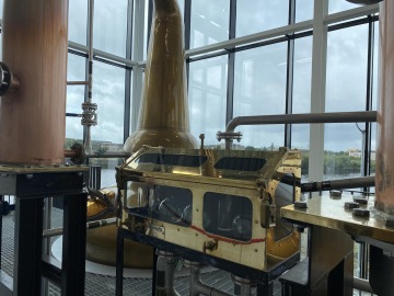P.S. Následující ráno jsme si řekli, že si přecijen trochu zasportujeme a vyrazili s plným kufrem lahví na hodinový výlet do mladé palírny Clydeside na břehu bývalého přístavního skladiště Queen’s Dock v Glasgow. Návštěva to byla rychlá, potřebovali jsme stihnout odjezd na letiště. "Hi, guys!", oslovil nás Atticus, zaměstnanec distillery shopu. Vysvětlili jsme, že bychom rádi na tour, ale čas nás tlačí. Řekl nám ať chvíli počkáme a za okamžik už cinkala klíčenka. Měli jsme štěstí a mohli soukromě okouknout pár destilačních kotlů, užít si výhled na řeku Clyde a ochutnat dva počiny z této palírny. Příjemný to bonus před odletem.
